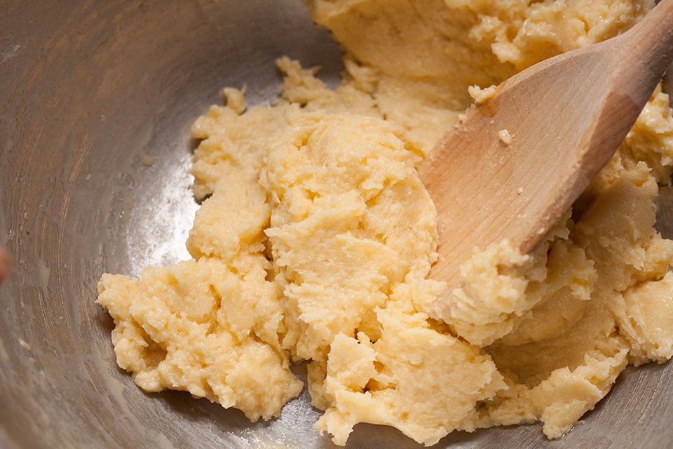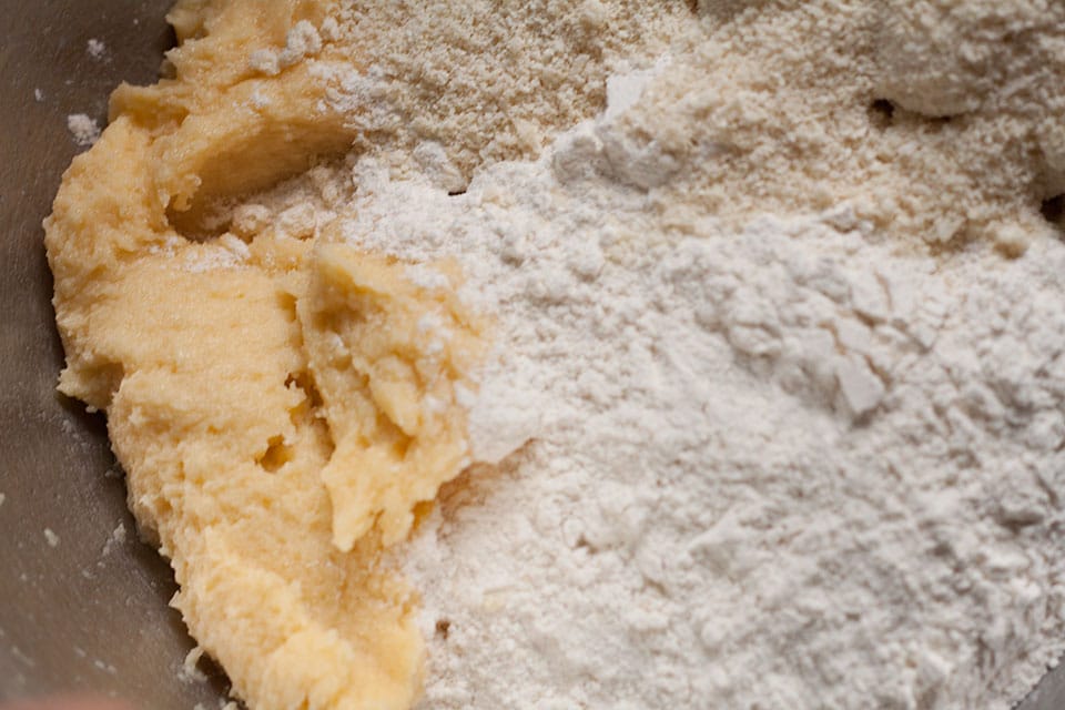 - Add the flour and ground almonds and mix to form a smooth dough.