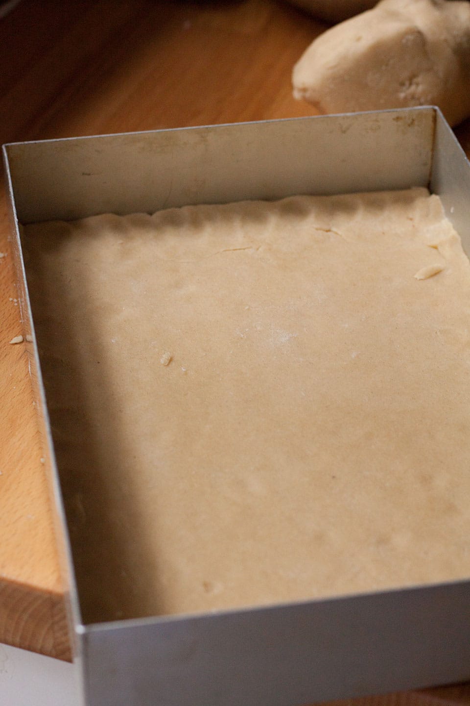 - Divide into two pieces and roll out one half to fit a 20 x 30 cm (8 x 12in) cake tin.