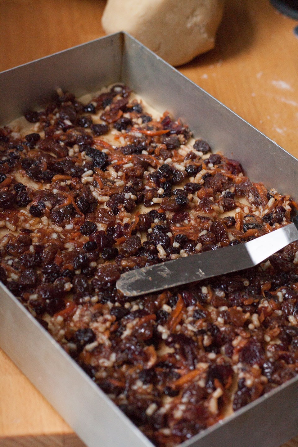 - If you do not have the correct size tin, roll out the pastry to the same size and place in a baking sheet. Cover with mincemeat but do not spread right to the very edge of the dough. Cover with remaining dough and chill for at least 30 minutes before marking into bars and baking.