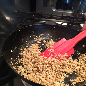 A word of warning when cooking the oats: don't turn your back on the pan, they can burn very quickly. Even when they are removed from the heat they may go on cooking in the pan so, if they look like they are getting too browned tip into a dish to stop the cooking.