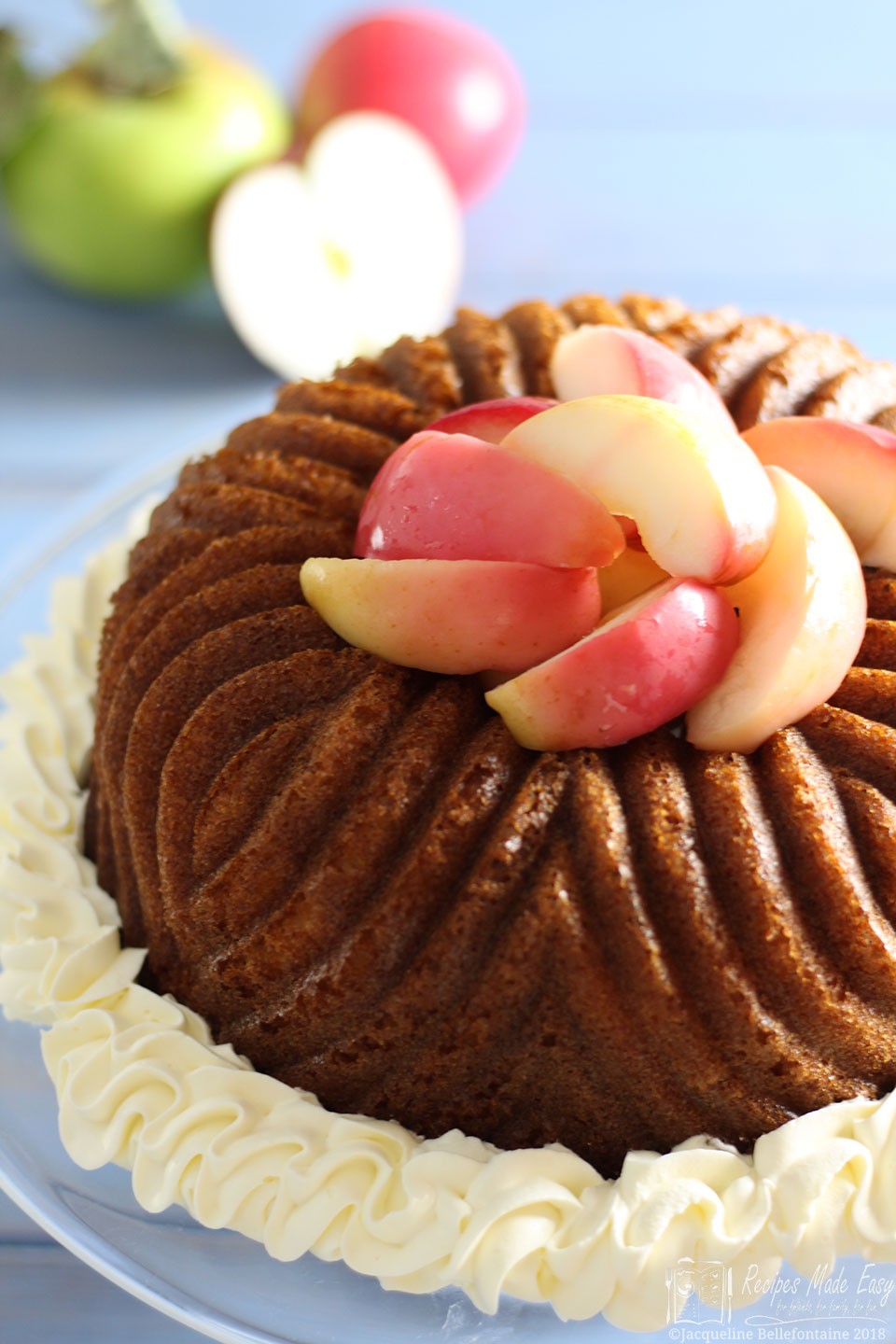 Love that bundt tin you've used, such a pretty shape. The cake looks delicious and apple is a great autumnal flavour.