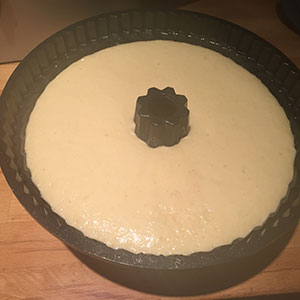- Preheat the oven to 200℃ /180℃ fan/gas mark 6. Bake for about 40 minutes or until golden and beginning to shrink away from the sides of the tin.