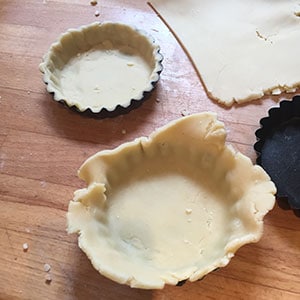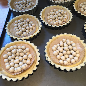 Baking the beetroot, onion and goats cheese tart cases blind