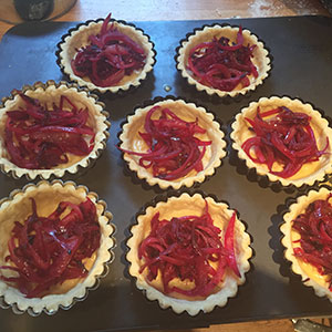 Beetroot, onion and goats cheese tarts