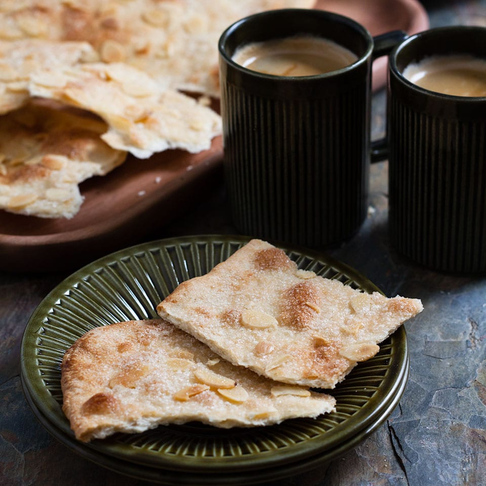As well as, the traditional shape brandy snap, you can drape them over the back of a muffin tin to shape into a basket, to make a pretty container for a dessert. Alternatively, you can drape them over a rolling pin or just leave them flat. It's really up to you.
