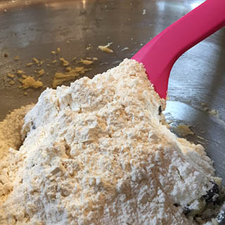 - Sift in the flour and beat into the mixture until well combined.