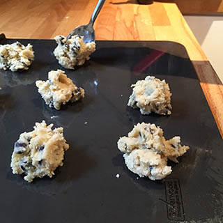 - Place round spoonfuls of the mixture onto baking trays, leaving room for the cookies to spread while baking. Shape each mound into a circle.