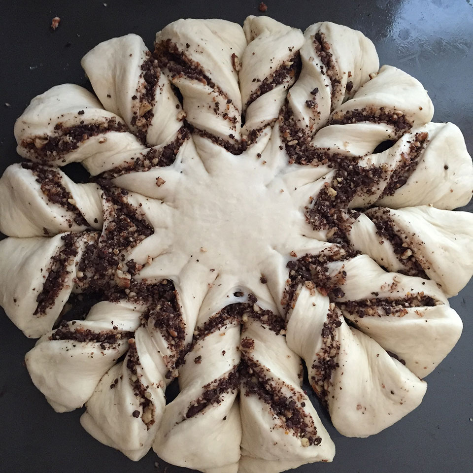 Continue until you have twisted all the sections. Leave to rise and then bake.