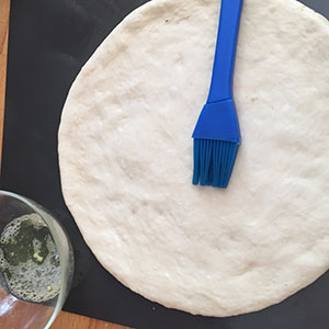 • When the dough has risen, knock back the dough and cut into two equal pieces. Form each piece into a ball, then roll each piece out to form a 28cm circle.