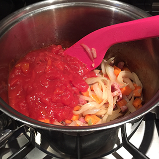 Add the tomatoes and stock.