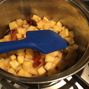 • Place the sugar, rum and spices in a large saucepan and heat gently stirring until the sugar has dissolved.