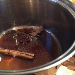 Place the rum sugar and spices in a large saucepan and heat gently until the sugar has dissolved.