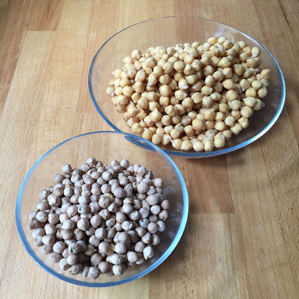 Notes: 200g of dried chick peas will produce 400g of cooked chick peas. When cooking in a pressure cooker, do not fill more than half way.
