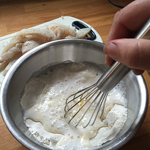 Although I own a deep fat fryer, I rarely use it as it takes 2 litres of oil, so I only use it when I am frying large items such as doughnuts. For this recipe I fry the fish in a wok. I am only cooking a small quantity, and not only does this use much less oil, it's also quicker. But for safety sake, make sure that you give the frying 100% attention. It's only for a few minutes, so better to be safe than sorry.