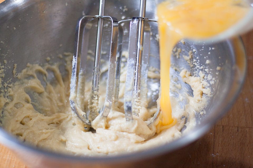 - Gradually beat in the egg a little at a time, beating well after each addition. Add the vanilla extract if using. I like to add it when serving the biscuits plain.