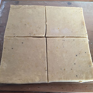 - Then roll and fold one more time, wrap and chill for at least 30 minutes before proceeding further.
