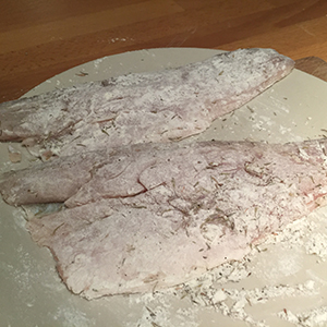 - Place the fish on a plate. Mix the flour, salt, pepper and thyme together and sprinkle over the fish. Turn the fish over a few times to coat it in the flour.