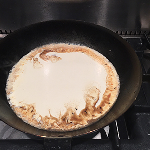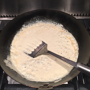 - Add the double cream and bring to the boil while stirring constantly. Taste and adjust the seasoning.