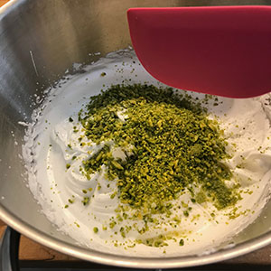 Pistachio, raspberry and lemon meringue roll