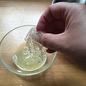 - Soak the gelatine in a small bowl of cold water for 2 minutes then gently squeeze out the water. Place in a heatproof bowl with the lemon juice. Stand the bowl in a saucepan of hot water and heat gently stirring until the gelatine dissolves. Remove from the heat.