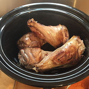 - Heat the oil in a large frying pan and brown the lamb shanks on all sides. Remove from the pan and place in the slow cooker.