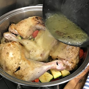 - Add the chicken to the pan adding the remaining oil. Brown the chicken for 2 to 3 minutes each side. You may find this easier to do in two batches. Transfer the chicken to the casserole