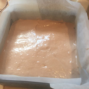 - Melt the butter and grease a 18cm deep loose bottom square cake tin with a little of the butter and set the rest aside. Preheat the oven to 180℃/160℃ fan/gas mark 4.
