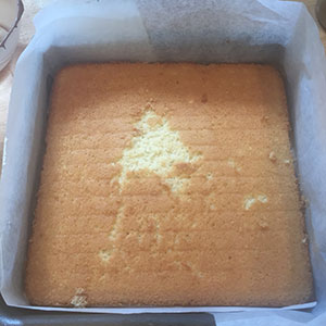 - Pour into the prepared tin and bake for 20–25 minutes until springy to the touch. Allow to cool in the tin for a few minutes, then transfer to a wire rack to cool completely.